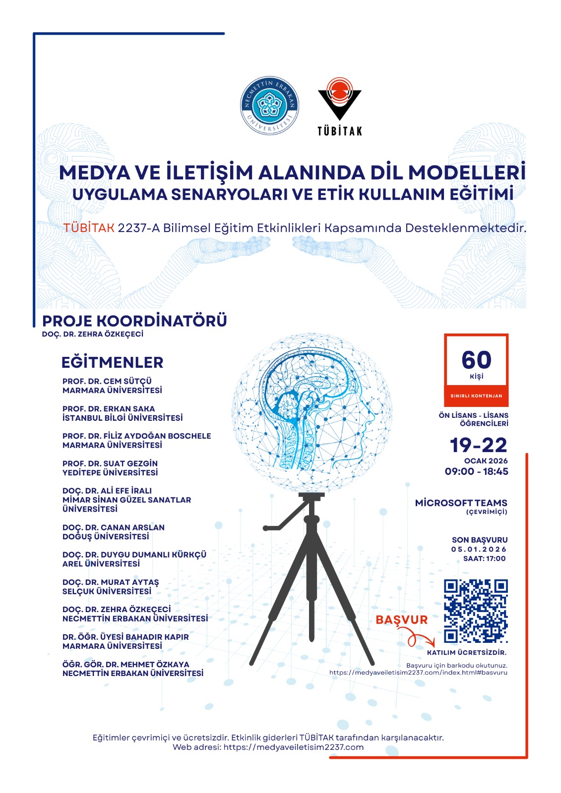 Sevgili öğrencilerimiz; ücretsiz, online ve Tübitak'ın katılımcılara sertifika verdiği eğitime katılım linki aşağıdadır.